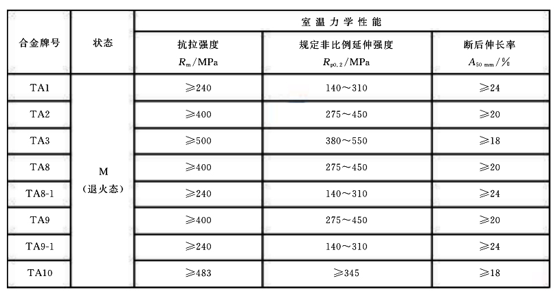 鈦及鈦合金焊接管的牌號(hào)、狀態(tài)和規(guī)格應(yīng)符合表1的規(guī)定。